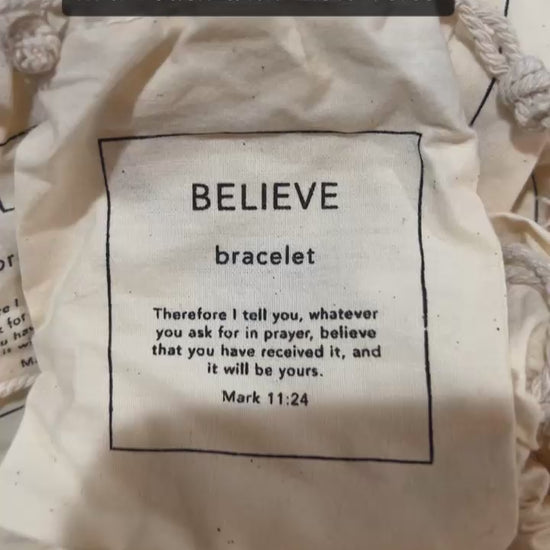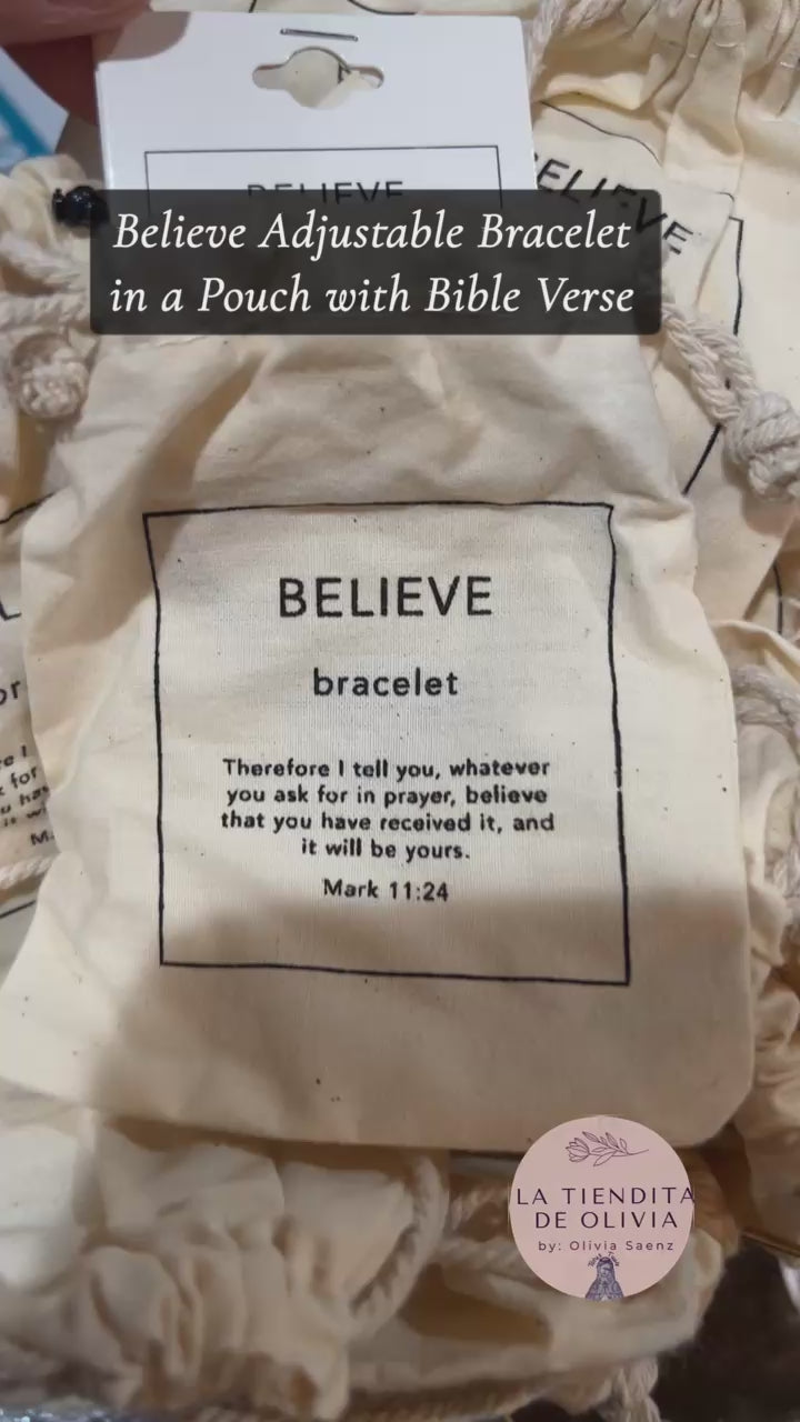 Believe Adjustable Bracelet in a Pouch with Bible Verse