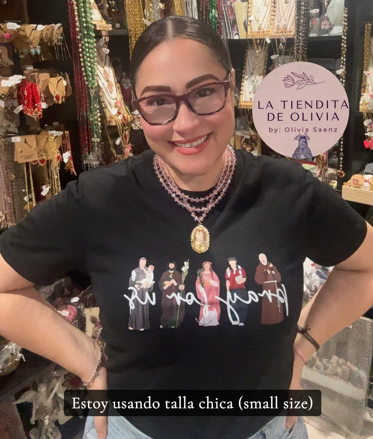 Camisa de los Santos, Padre Pío, Carlo Acutis, Filomena, San José y San Antonio…Size Large