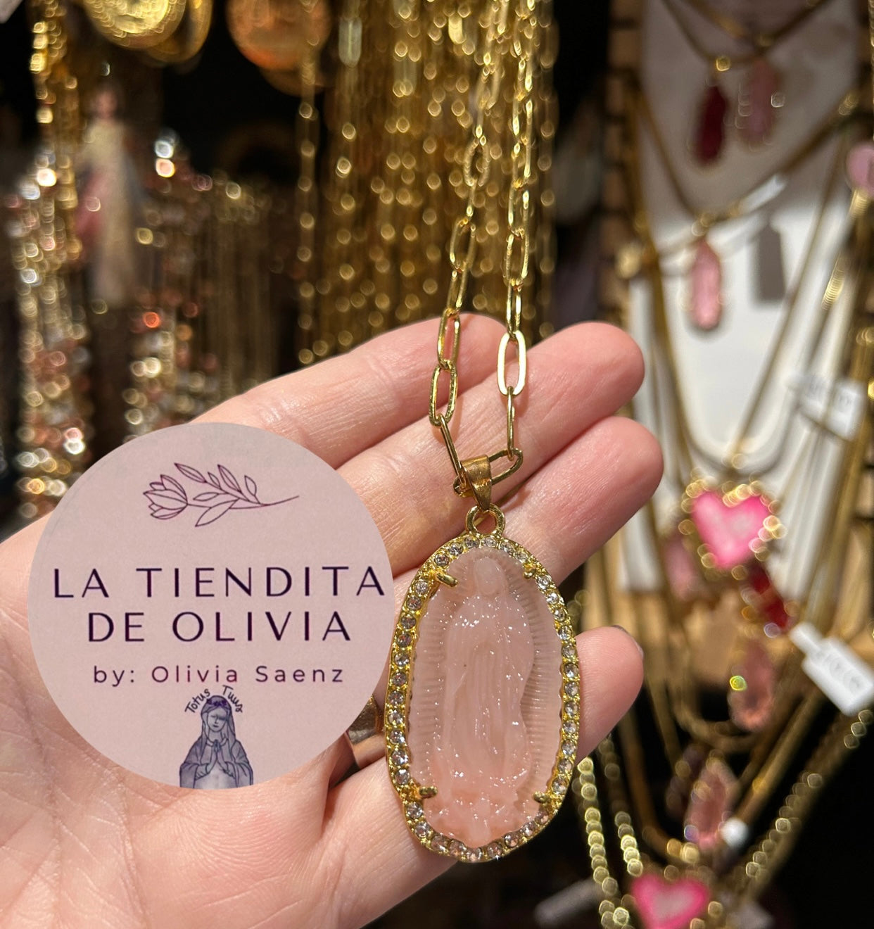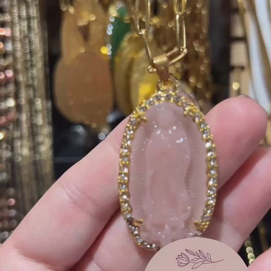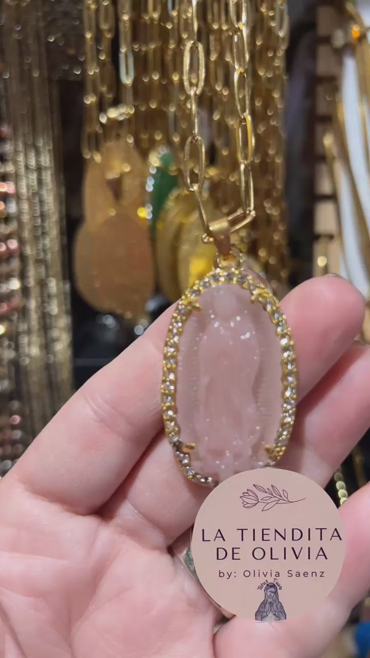 Medalla Virgencita de Guadalupe Rosa Paper Clip Necklace Stainless Steel 32” long
