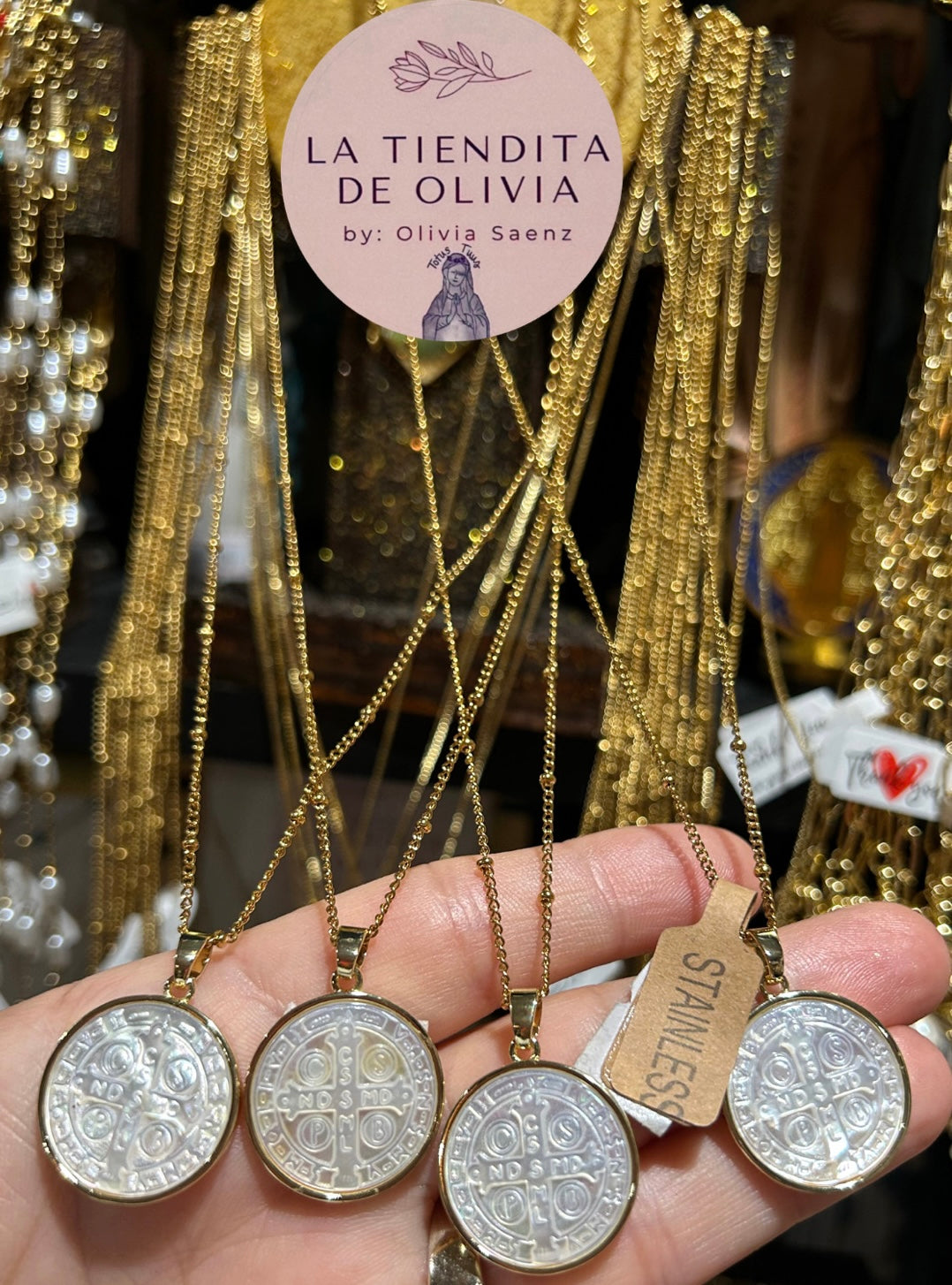 Mother of Pearl Saint Benedict Necklace Stainless Steel