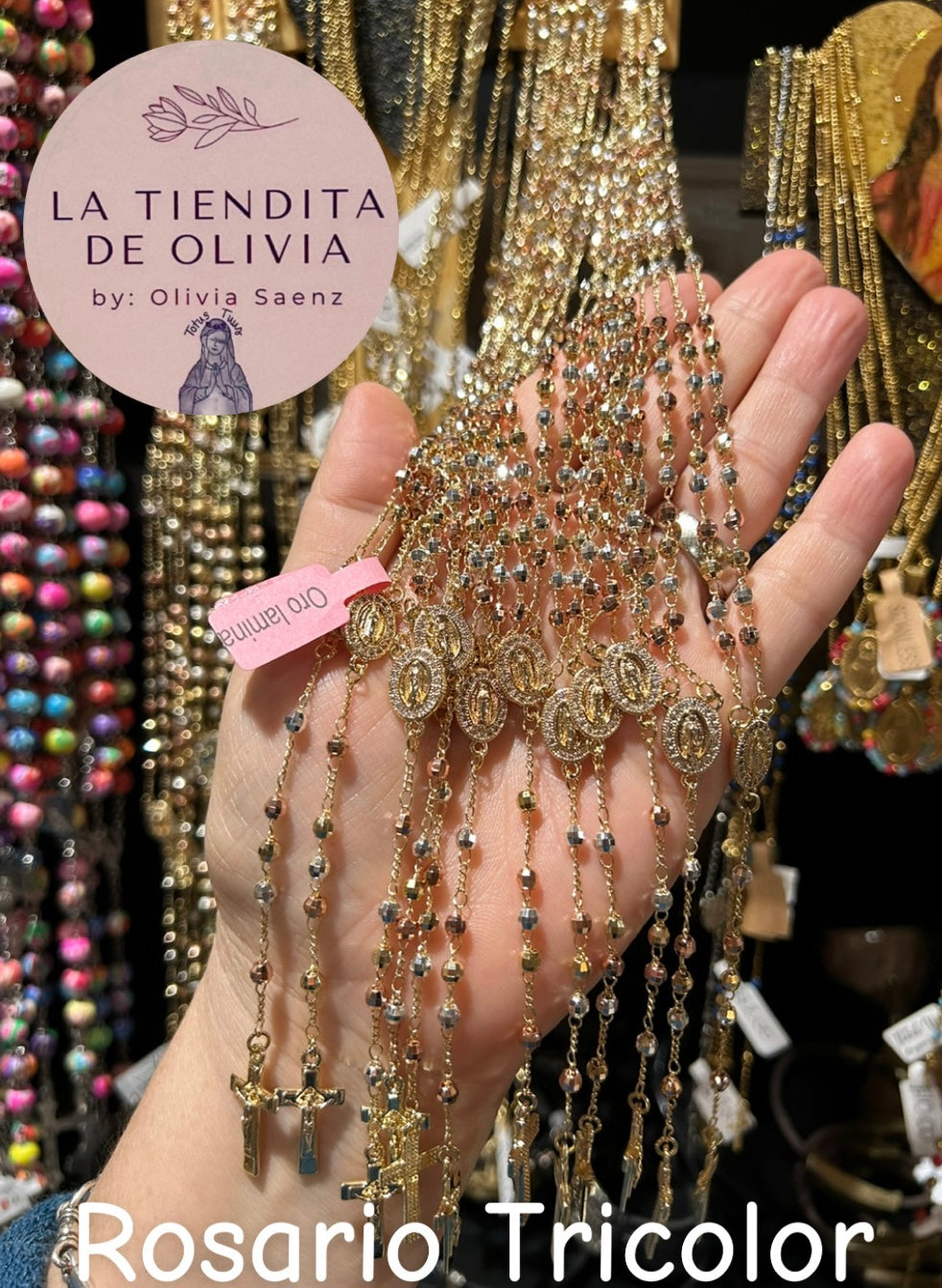 Rosario Tricolor Oro Laminado Virgencita de Guadalupe