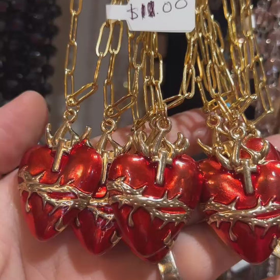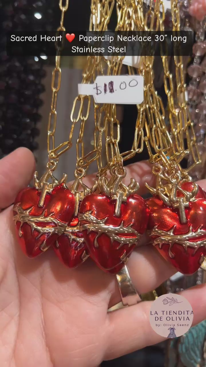 Sacred Heart ❤️ Paperclip Necklace 30” long Stainless Steel