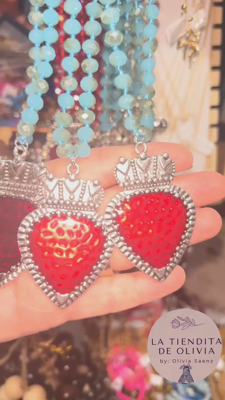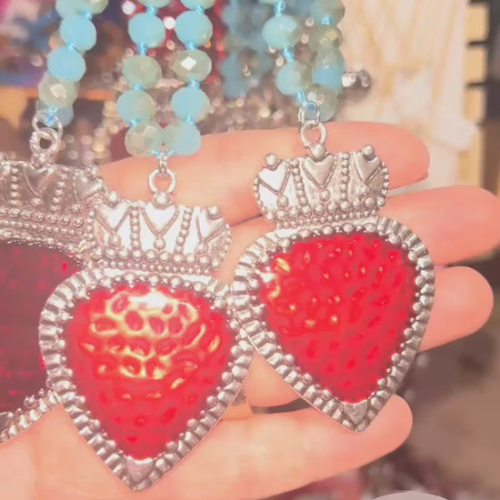 Sacred Heart ❤️ Turquoise & Silver Crystal Necklace - 58” long