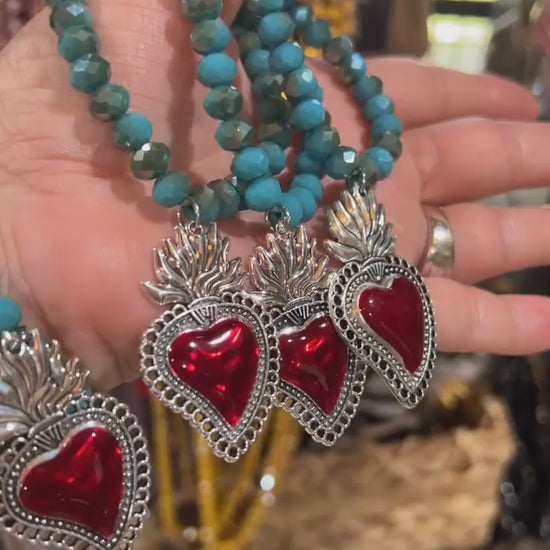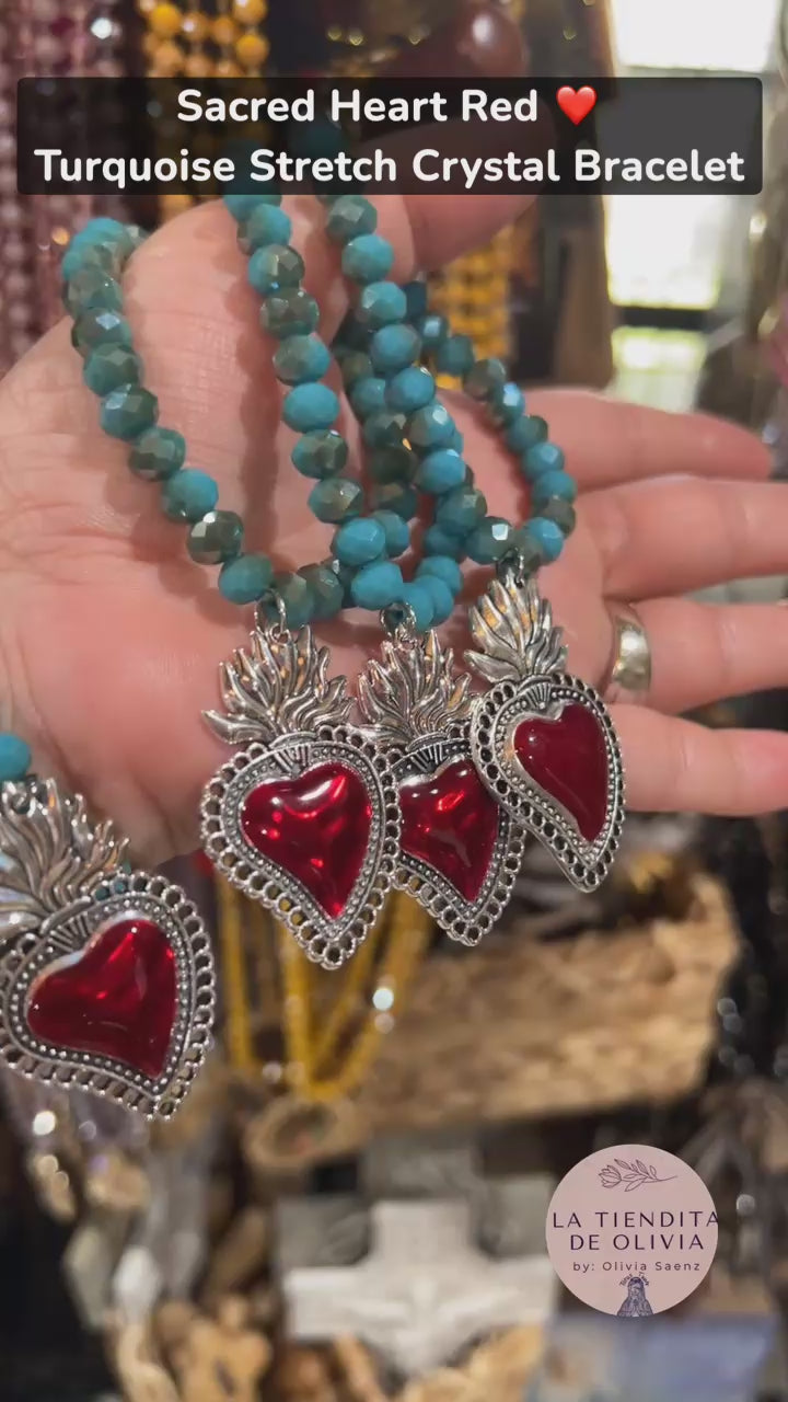 Sacred Heart Red ❤️ Turquoise Stretch Crystal Bracelet