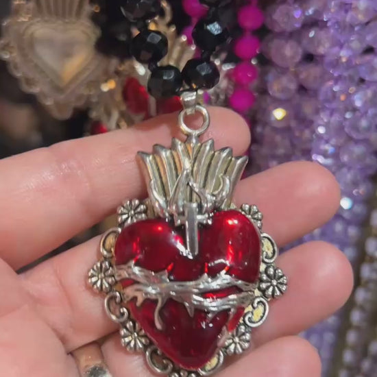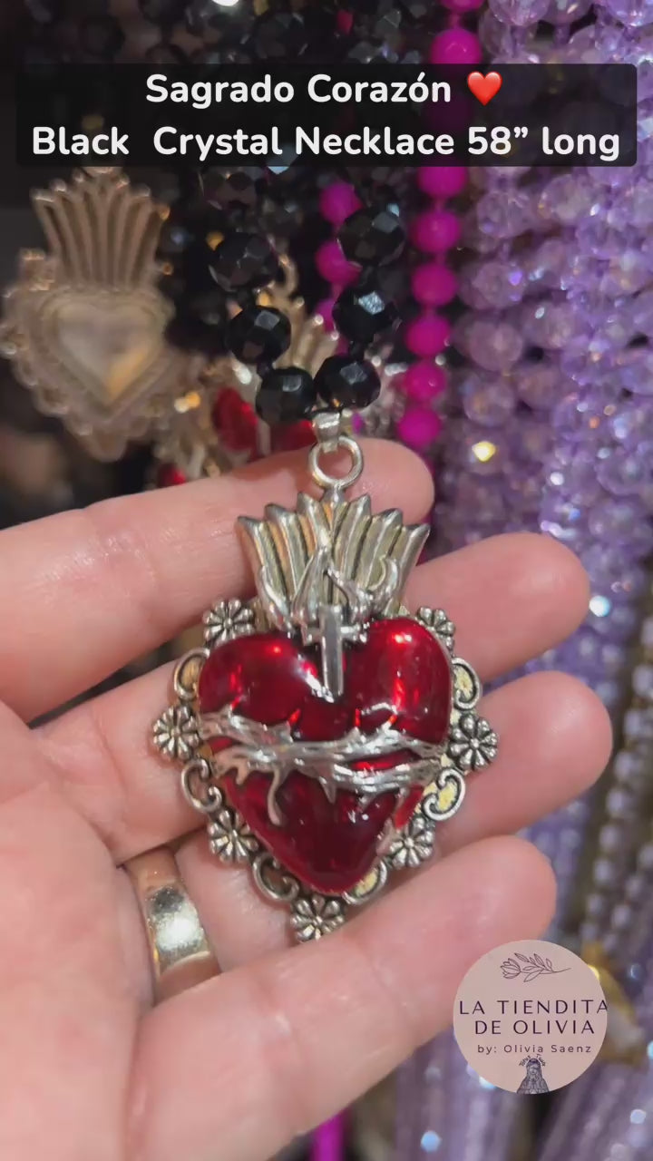 Sagrado Corazón ❤️ Black Crystal Necklace 58” long