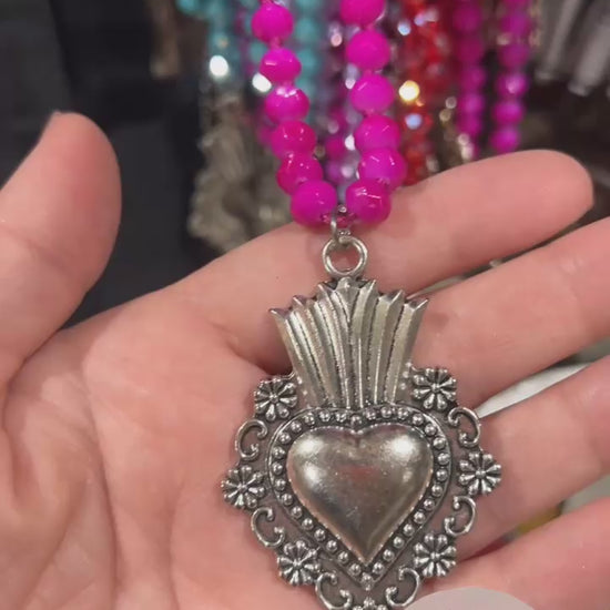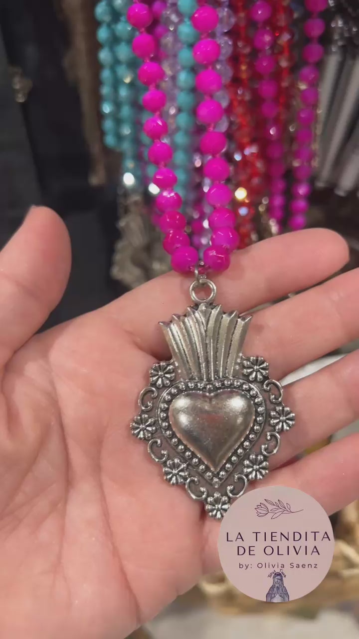 Sagrado Corazón Crystal Necklace - 60” long Color Fuchsia