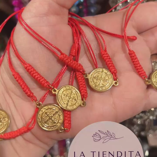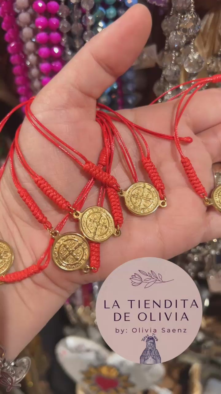Saint Benedict Gold Medal Stainless Steel - Red Bracelet Adjustable