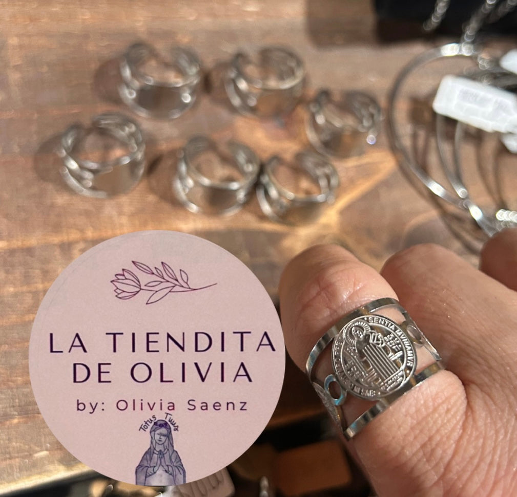 Silver Saint Benedict Ring Adjustable- Stainless Steel