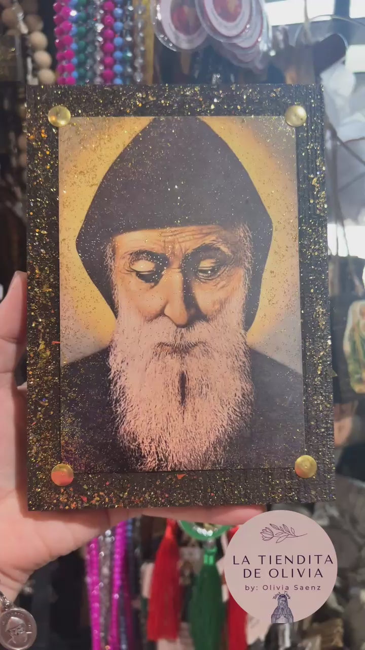 San Chárbel Cuadro de Madera Medidas Aproximadas 5” x 7” Elaborado y Diseñado por LA TIENDITA DE OLIVIA