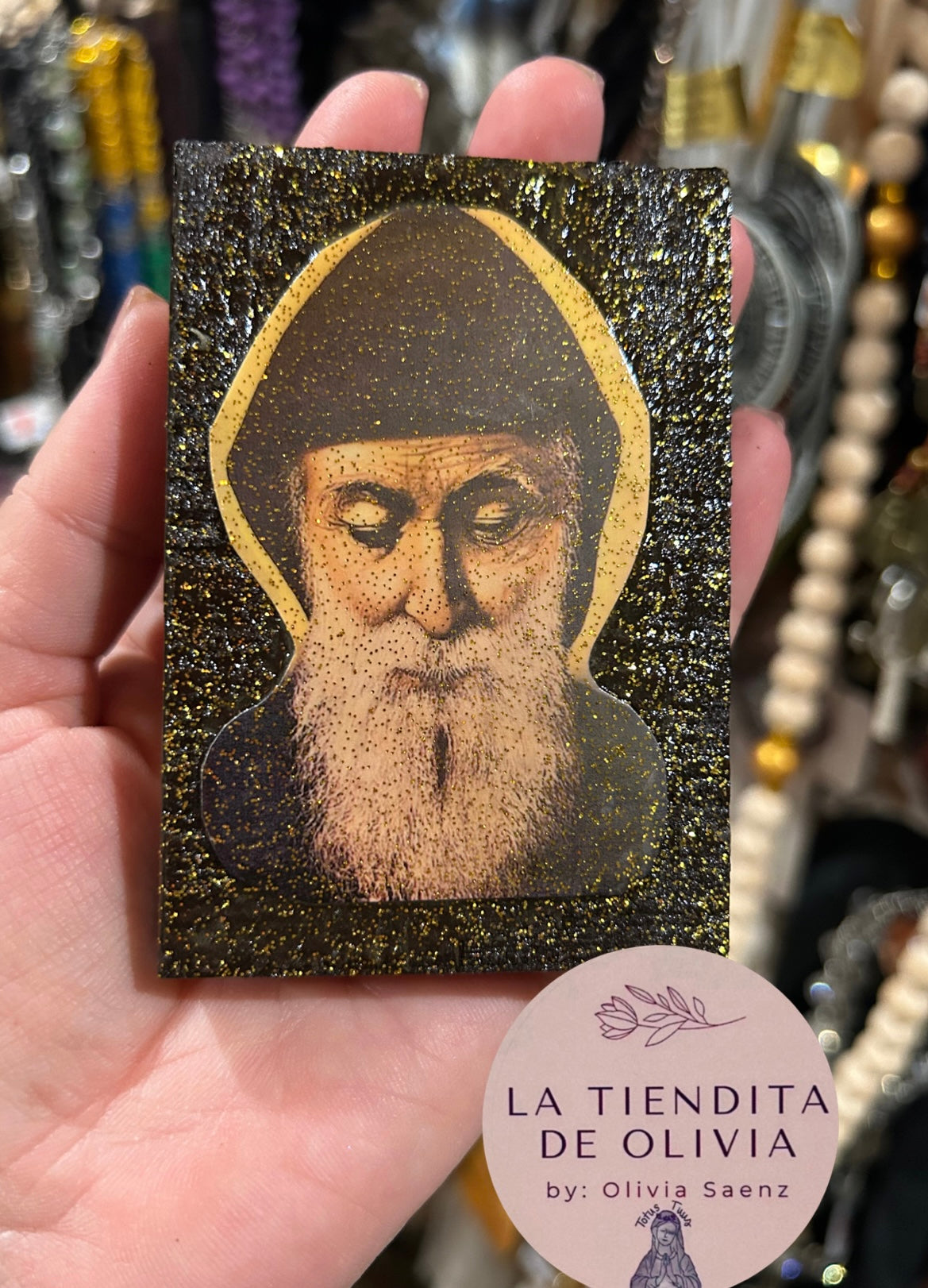 San Chárbel Mini Cuadrito de Madera Medidas Aproximadas 2”x 3” Elaborado y Diseñado por LA TIENDITA DE OLIVIA