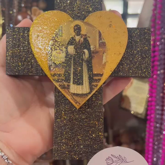 SAN MARTÍN DE PORRES Mini Cruz de Madera para colgar