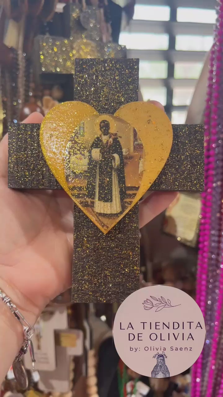SAN MARTÍN DE PORRES Mini Cruz de Madera para colgar Medidas aproximadas 4.5" X 6" Elaborada y diseñada por La Tiendita de Olivia