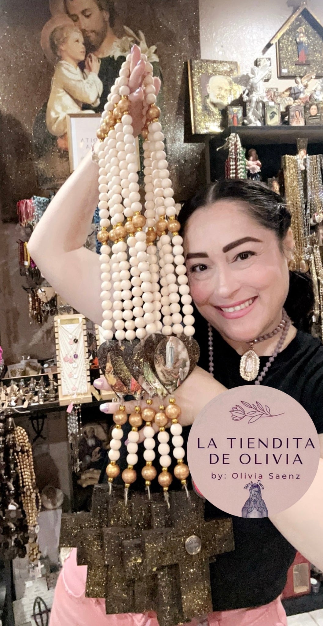 Virgen de Lourdes Rosario Grande de Madera - Elaborado y Diseñado por La Tiendita de Olivia
