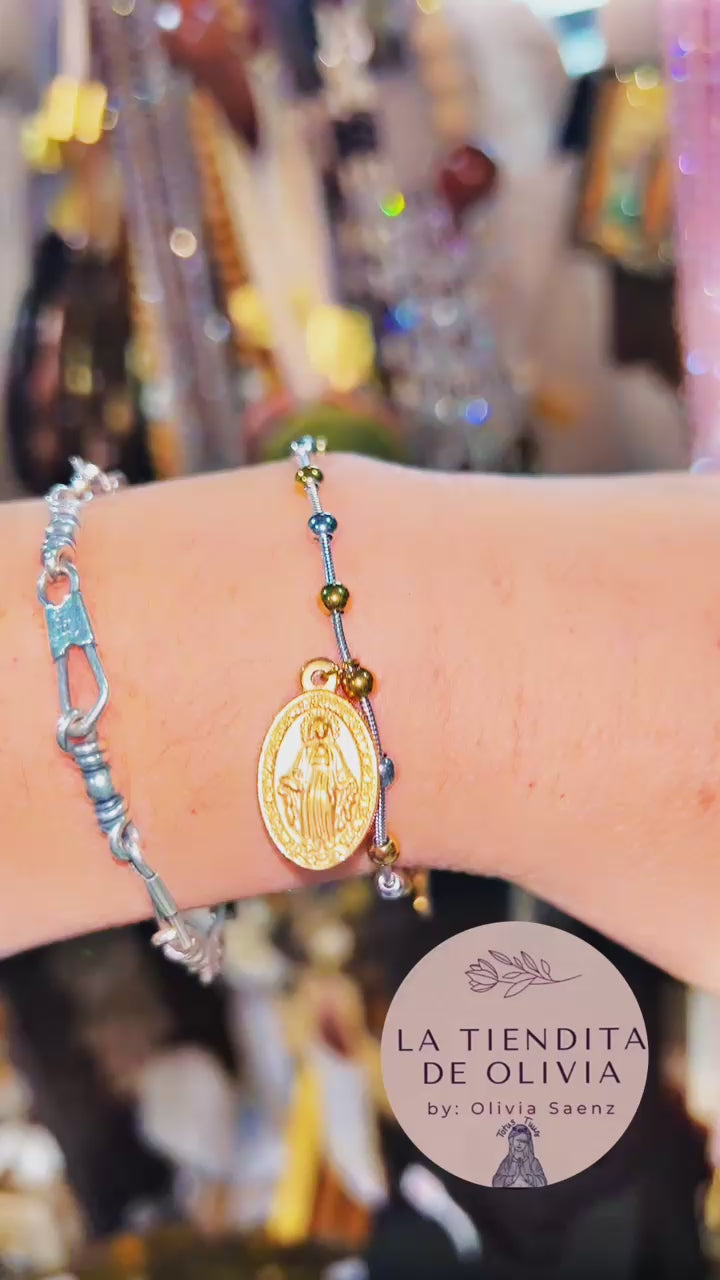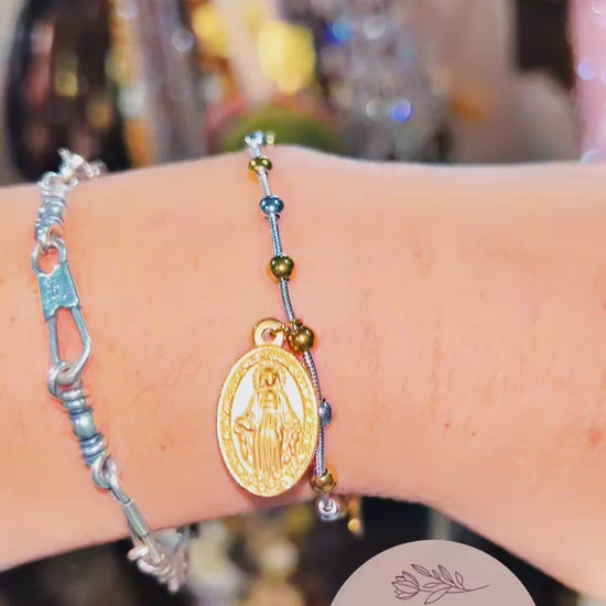 Virgen Medalla Milagrosa Rosario-Brazalete Plateado y Dorado Acero Inoxidable