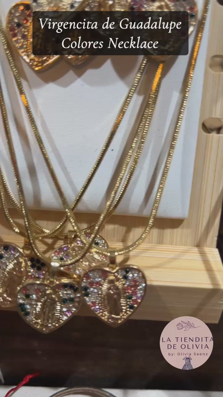 Virgencita de Guadalupe Colores Necklace 18” long Stainless Steel
