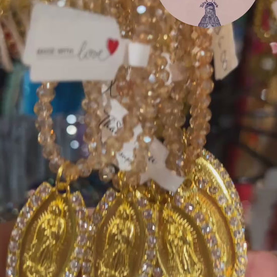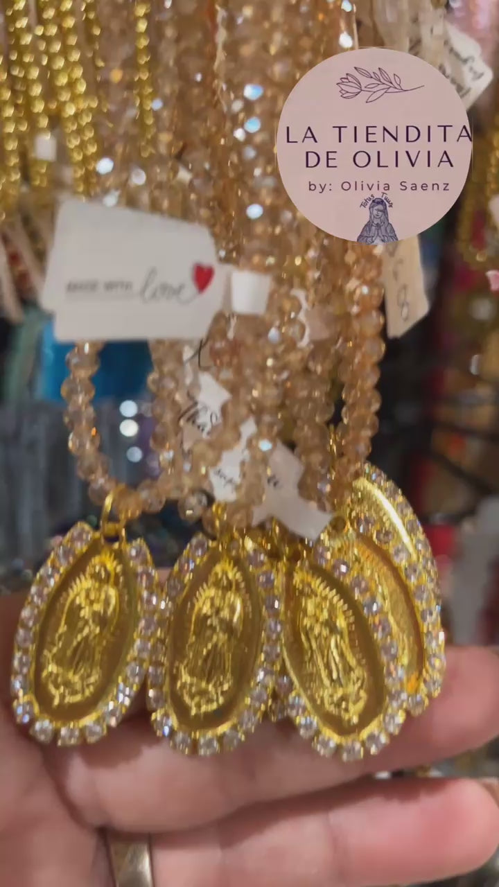 Virgencita de Guadalupe Stretch Crystal Bracelet - Gold & Champagne Color